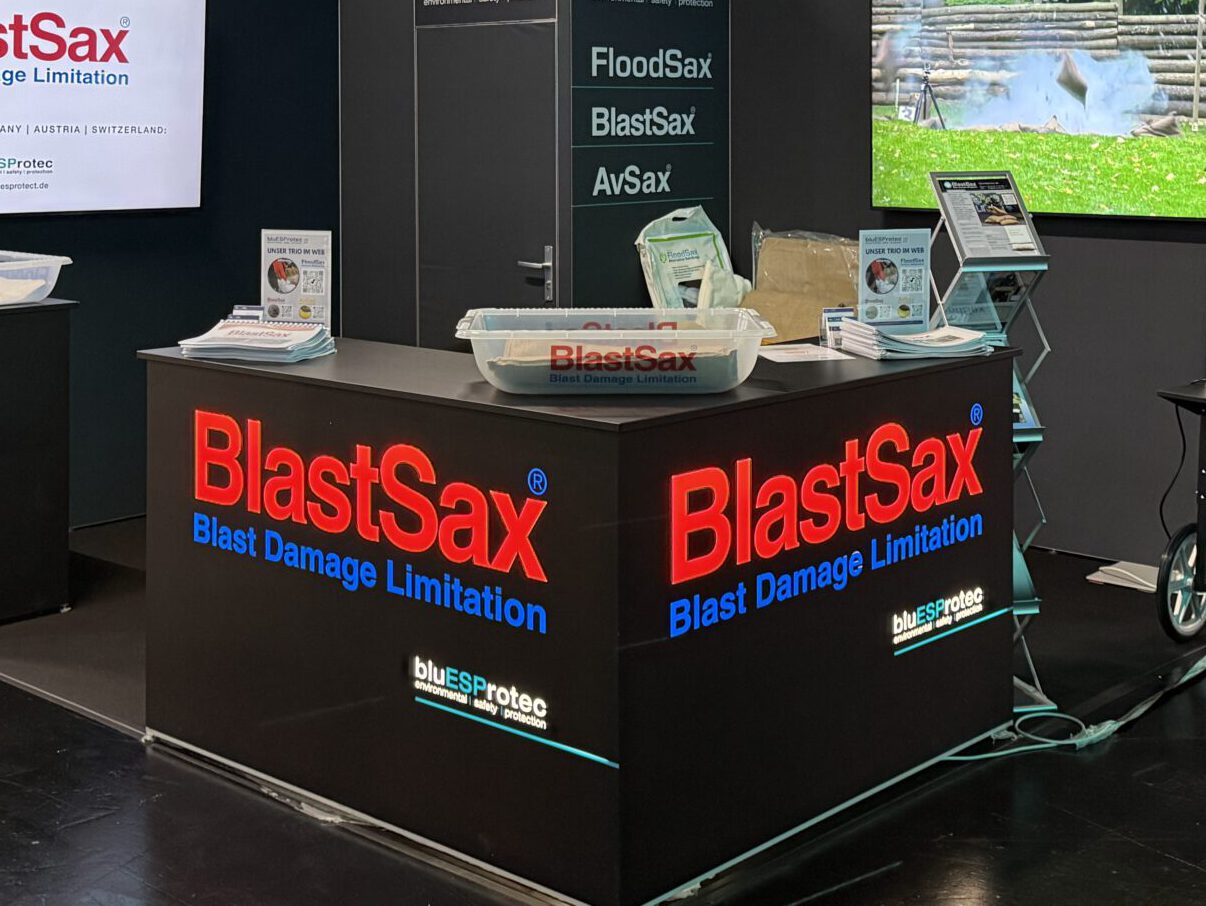 Im Mittelpunkt des Messeauftritts steht zwar das Wasserschutzsystem FloodSax, dennoch haben auch Interessenten von BlastSax die Möglichkeit, sich umfassend über die leistungsfähigen Sprengschutzsäcke zu informieren.